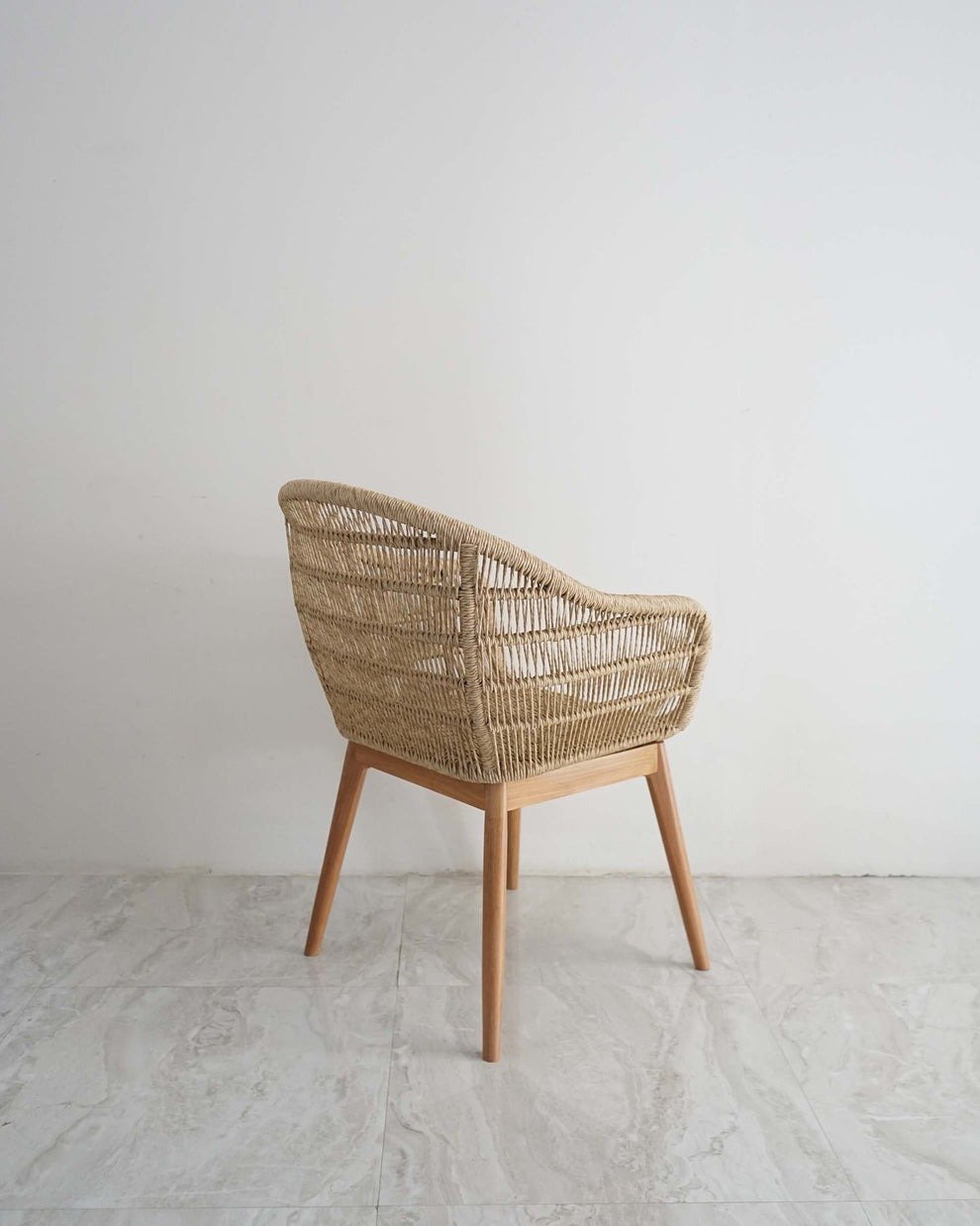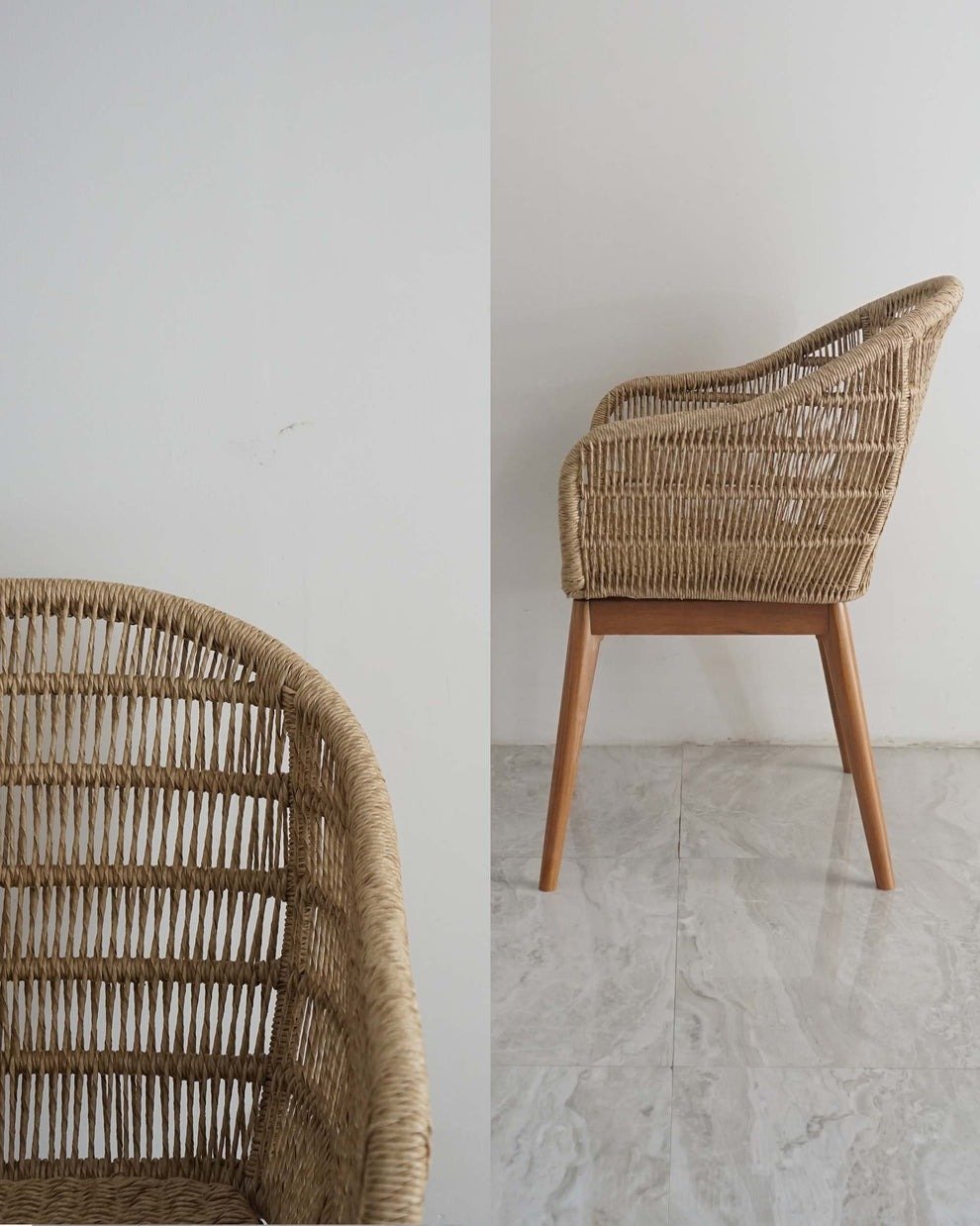 Bora Chair ini memliki sandaran belakang dan belakang yang ergonomis karena terbuat dari synthetic paper cord mengikuti bentuk tubuh sehingga nyaman saat digunakan. Sedangkan dari segi kekuatan, masih mengandalkan kayu jati solid yang dikenal akan ketahanan dan keawetannya seperti produk Naenamu lainyya yang menggunakan material yang sama. Dan yang terakhir, perpaduan antara synthetic paper cord dan kayu jati menghasilkan look yang tampak serasi.