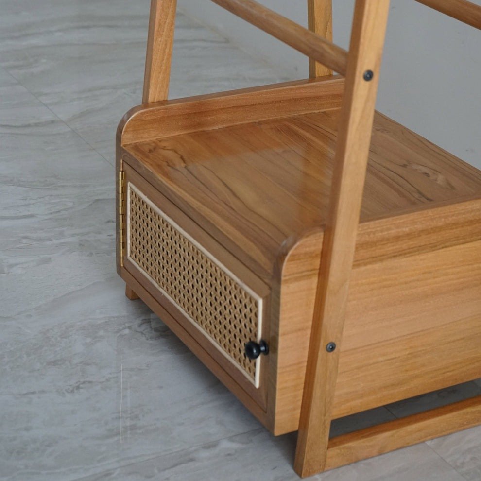 Rak Tempat Mukena dan Sajadah dengan Pintu Rotan dari Naenamu Furniture adalah pilihan yang sempurna untuk menyimpan mukena dan sajadah dengan elegan. Tambahkan kehangatan alami dan kepraktisan dalam penyimpanan Anda dengan rak yang menawan ini.
