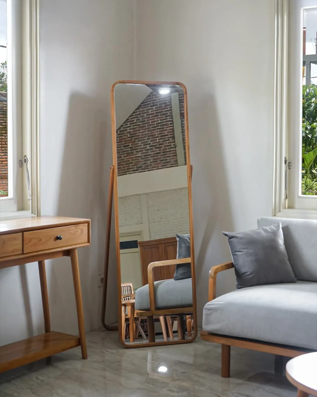 Desainnya yang simpel membuat cermin ini tidak memakan terlalu banyak ruang walaupun sudah bisa digunakan bercermin full body. Selain itu, item yang satu ini cocok digunakan sebagai tambahan dekorasi ruangan.